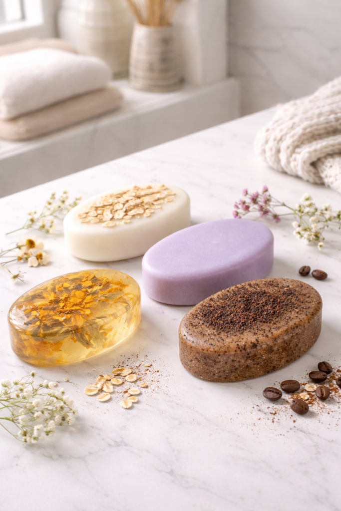 Jabones artesanales hechos a mano, formulados para cuidar y nutrir tu piel, mientras sus aromas envolventes transforman tu rutina en un momento de calma y bienestar.