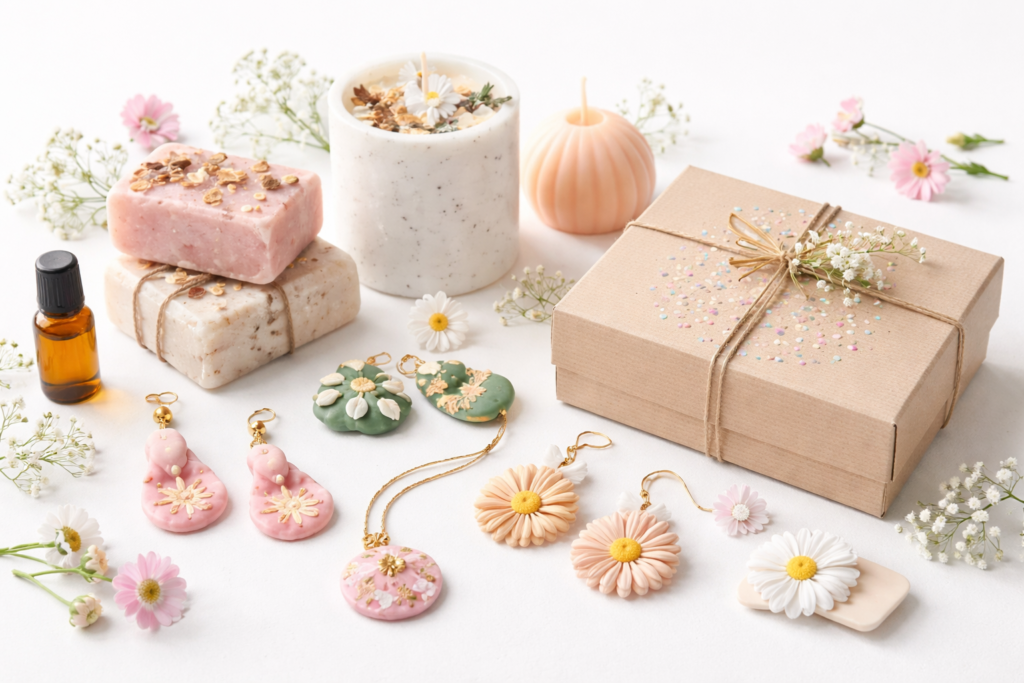 Accesorios en arcilla polimérica y resina, velas aromáticas y decorativas, jabones y decoración en madera, pensados para aportar belleza, calma y estilo a cada espacio y momento.